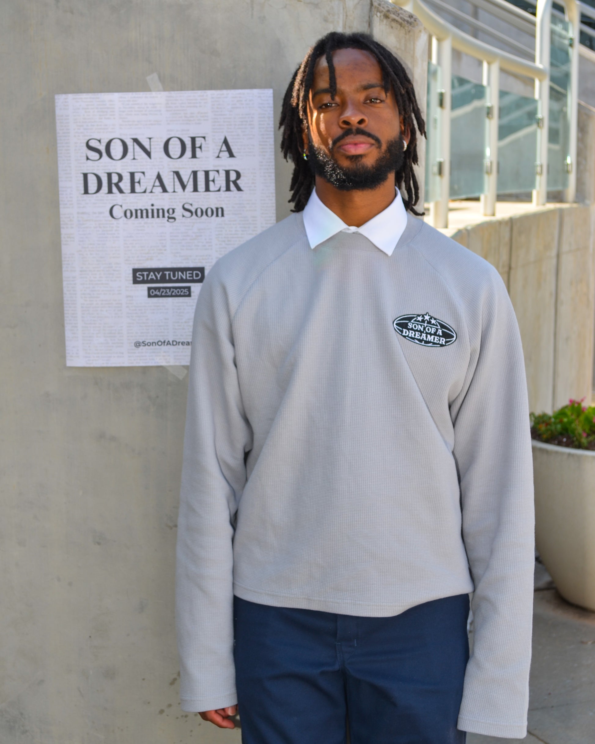 The Son Of A Dreamer collared crewneck blends minimal streetwear with timeless prep style. Designed with a structured collar, embroidered chest logo, and versatile fit that transitions seamlessly from casual to elevated looks.